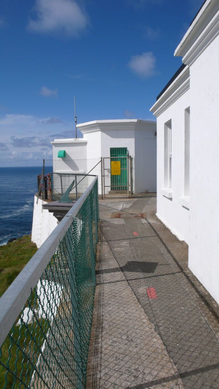 This is an unusual sundial made of Valentia Slate. It used to be situated beyond the Fog Signal House. It was repositioned here and set by Capt. Eoin Deignan of CIL, who also set the sundial for the Air India Disaster Memorial, designed by Ken Thompson, on Sheep’s Head. The time shown is ‘Local Apparent Time’ or Sun Time which can be converted to Clock Time by making allowances for three factors:
